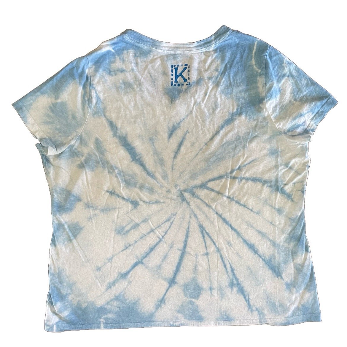 Block printed blue "K" logo stamp (approx 1") on nape of neck.
