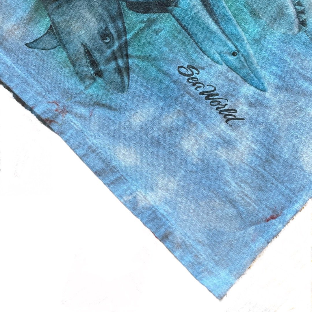 Vintage Sea World tank top with assorted sharks and some other fish. Art by Harlequin Nature Graphics circa 2004.